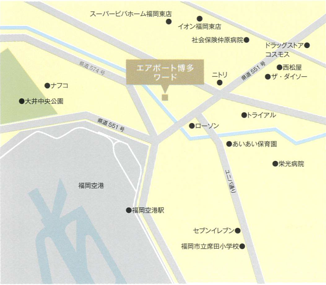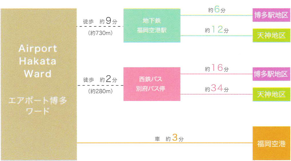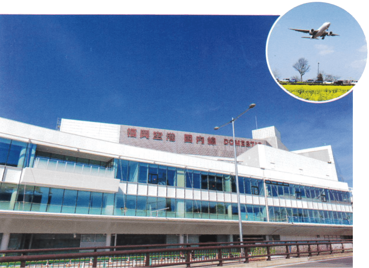 国内外へ航空機が離発着する福岡空港へは車で3分、九州の交通網の要となる博多駅へは地下鉄で6分と交通アクセスの良さが抜群です。